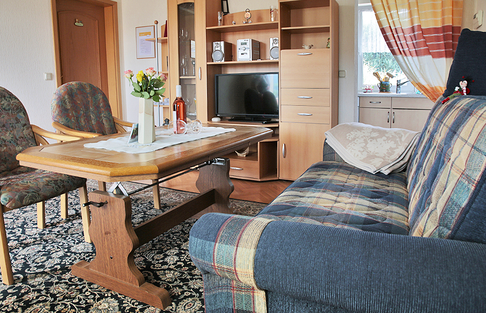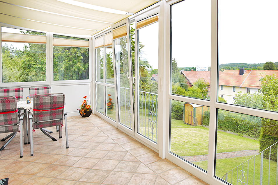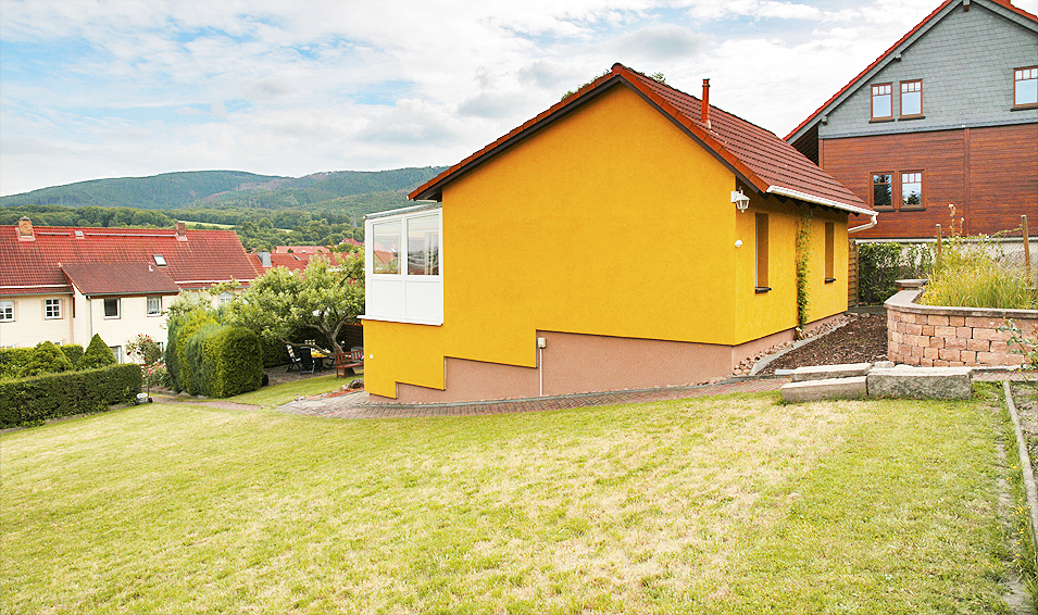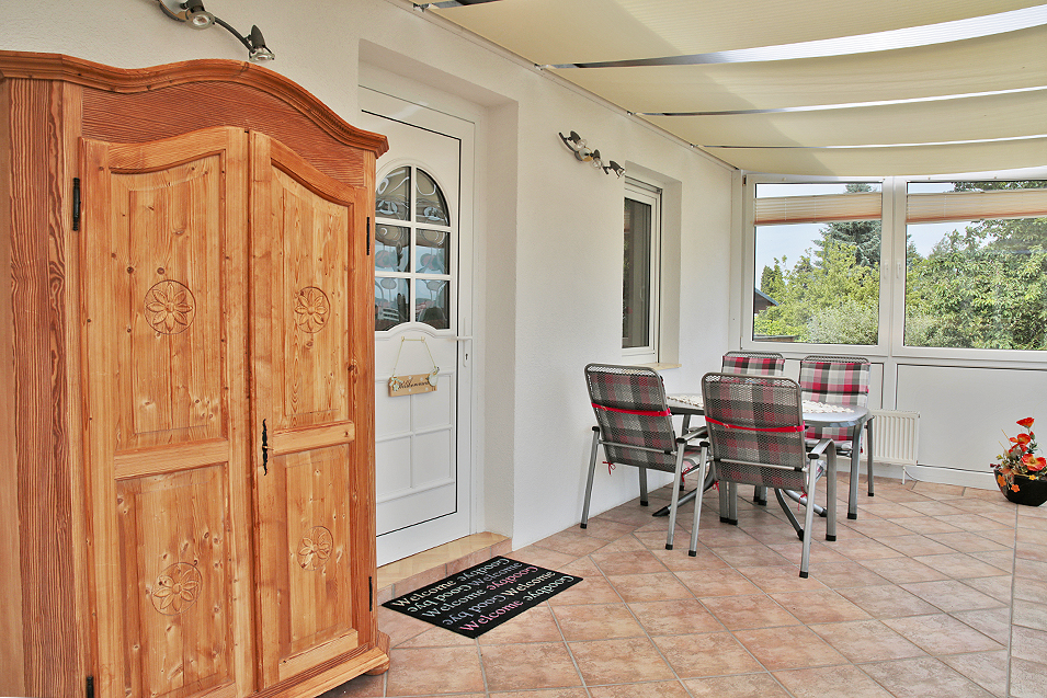 Im Eingangsbereich zum Ferienhaus befindet sich der Wintergarten mit einem wunderschönen Blick über Ilsenburg und die Harzer Berglandschaft. |