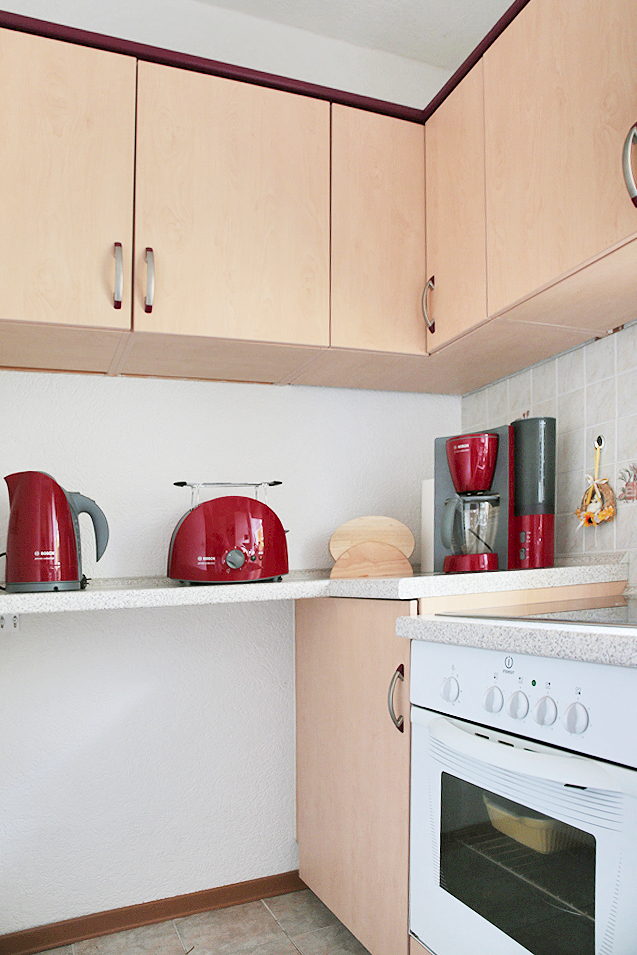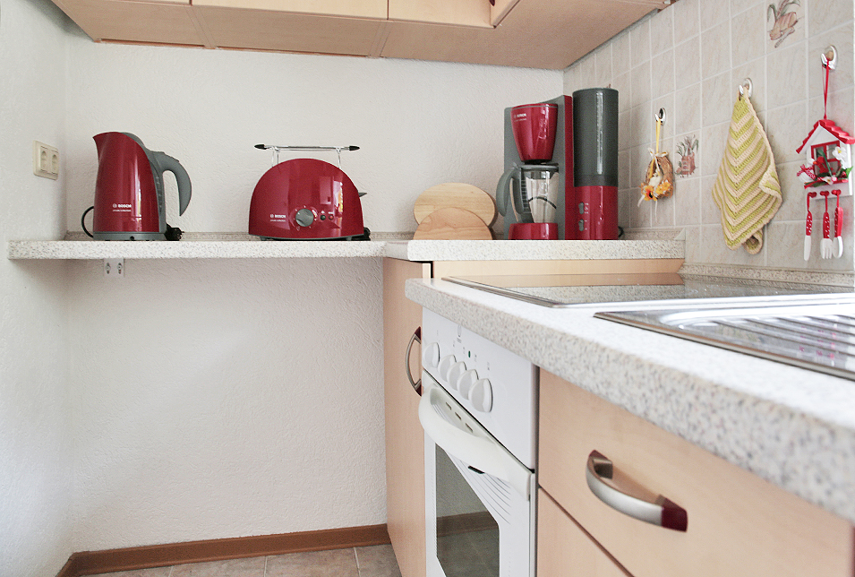 In der komplett ausgestatteten Küche ist ein Herd mit Ceranfeld, eine Backröhre, ausreichend Geschirr, Töpfe, eine Kaffeemaschine, ein Wasserkocher sowie ein Toaster vorhanden. |